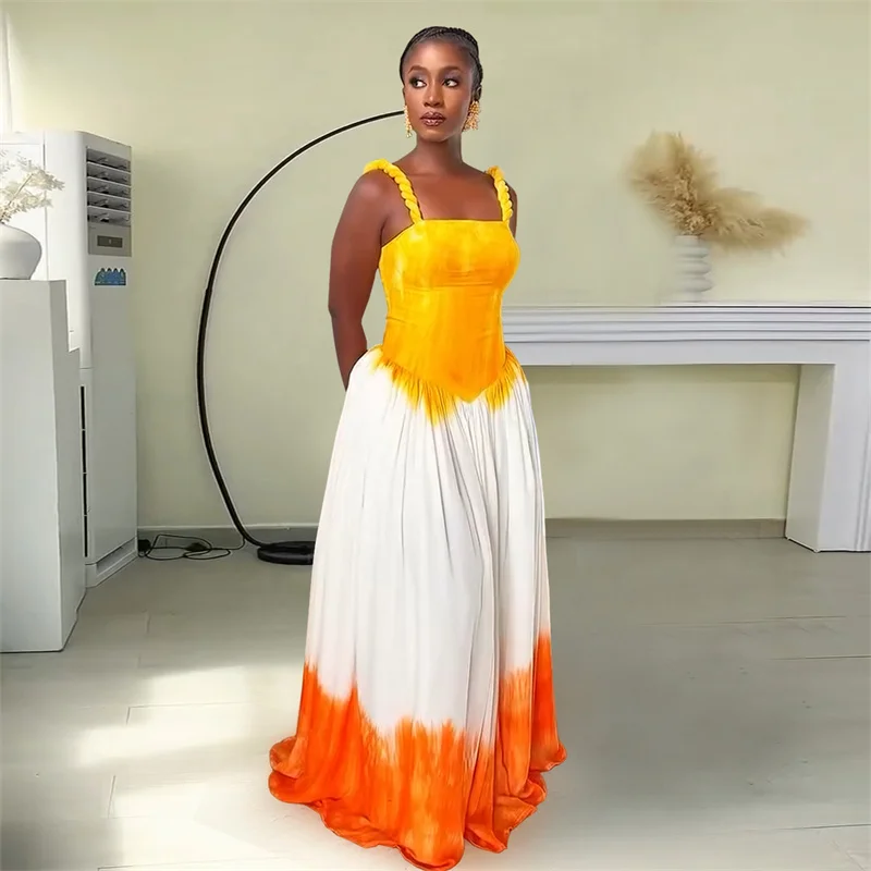 • Yellow A-Line Elegant Summer Maxi Dress
