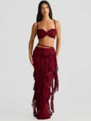 Summer Lace  Two Piece Sets  Fashion Strapless Crop Tops And Maxi Skirt  Elegant Beach  2 Piece Set - Image 6