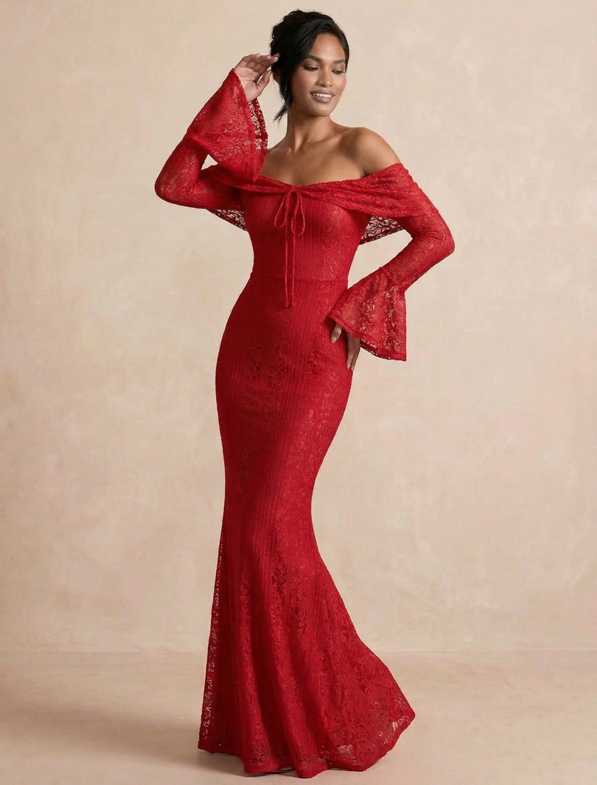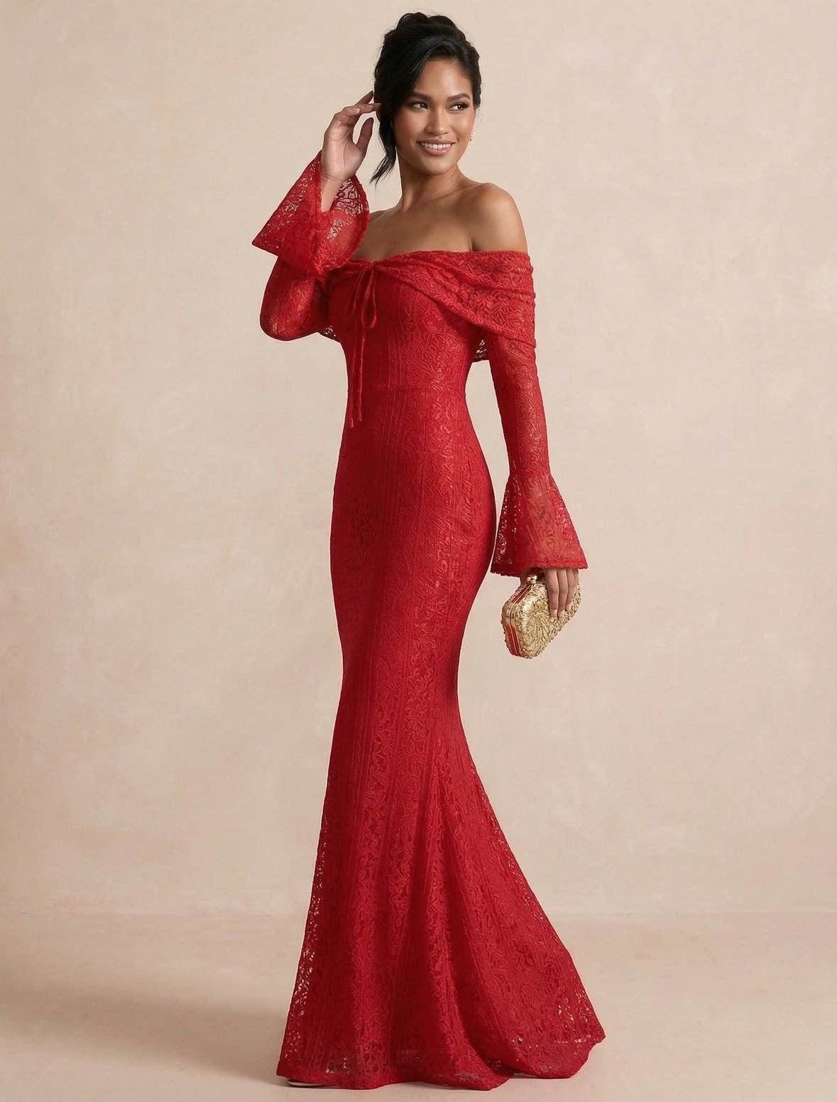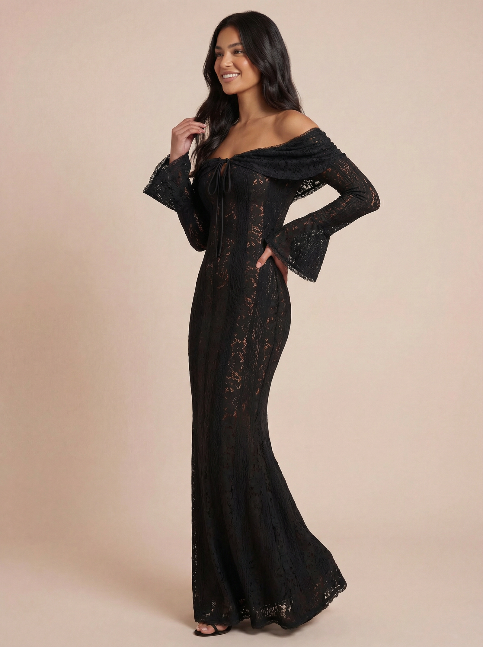 HomeShop AllOff Shoulder Strapless Elegant Lace Maxi Dress