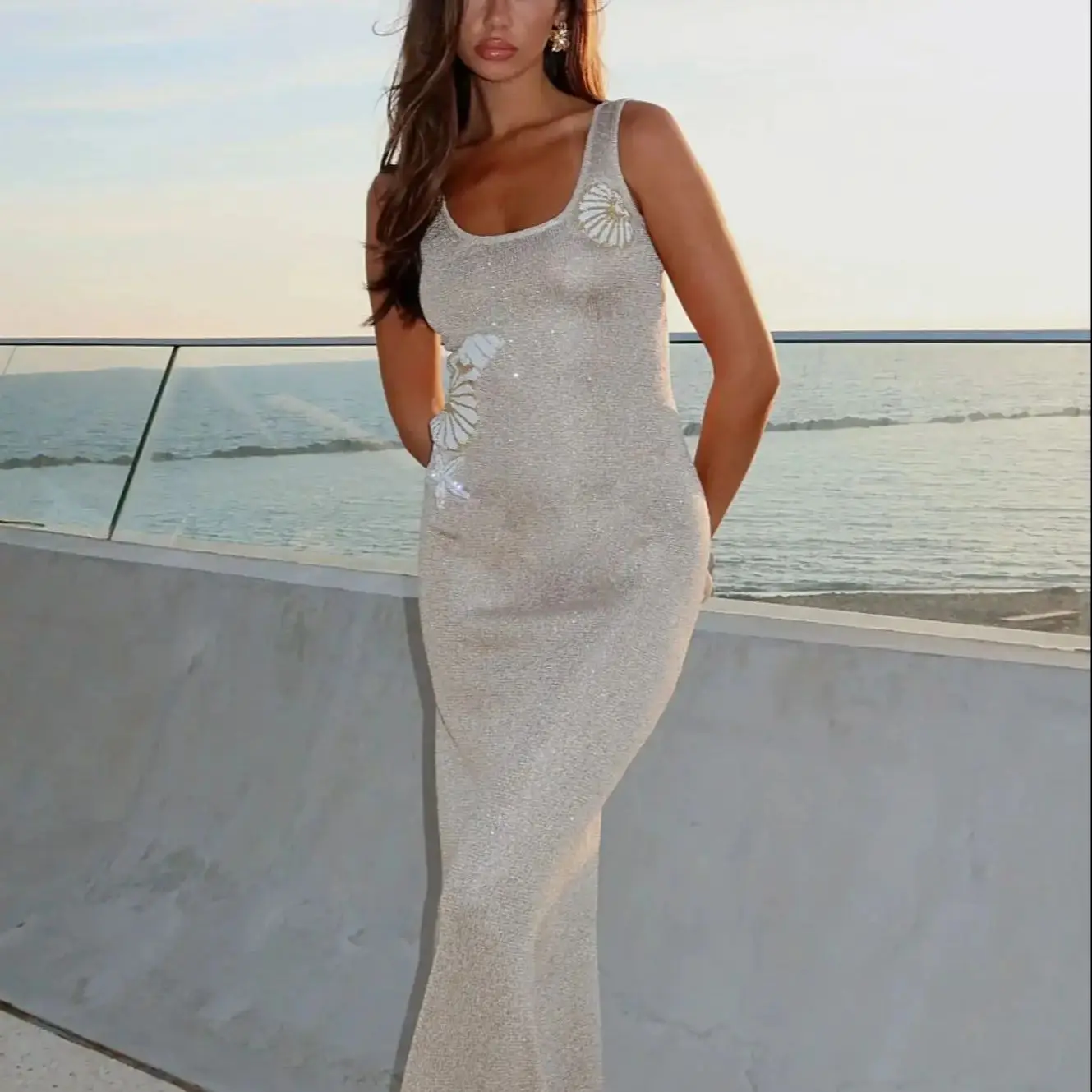 Sleeveless Shell Corchet Bodycon Maxi Dress